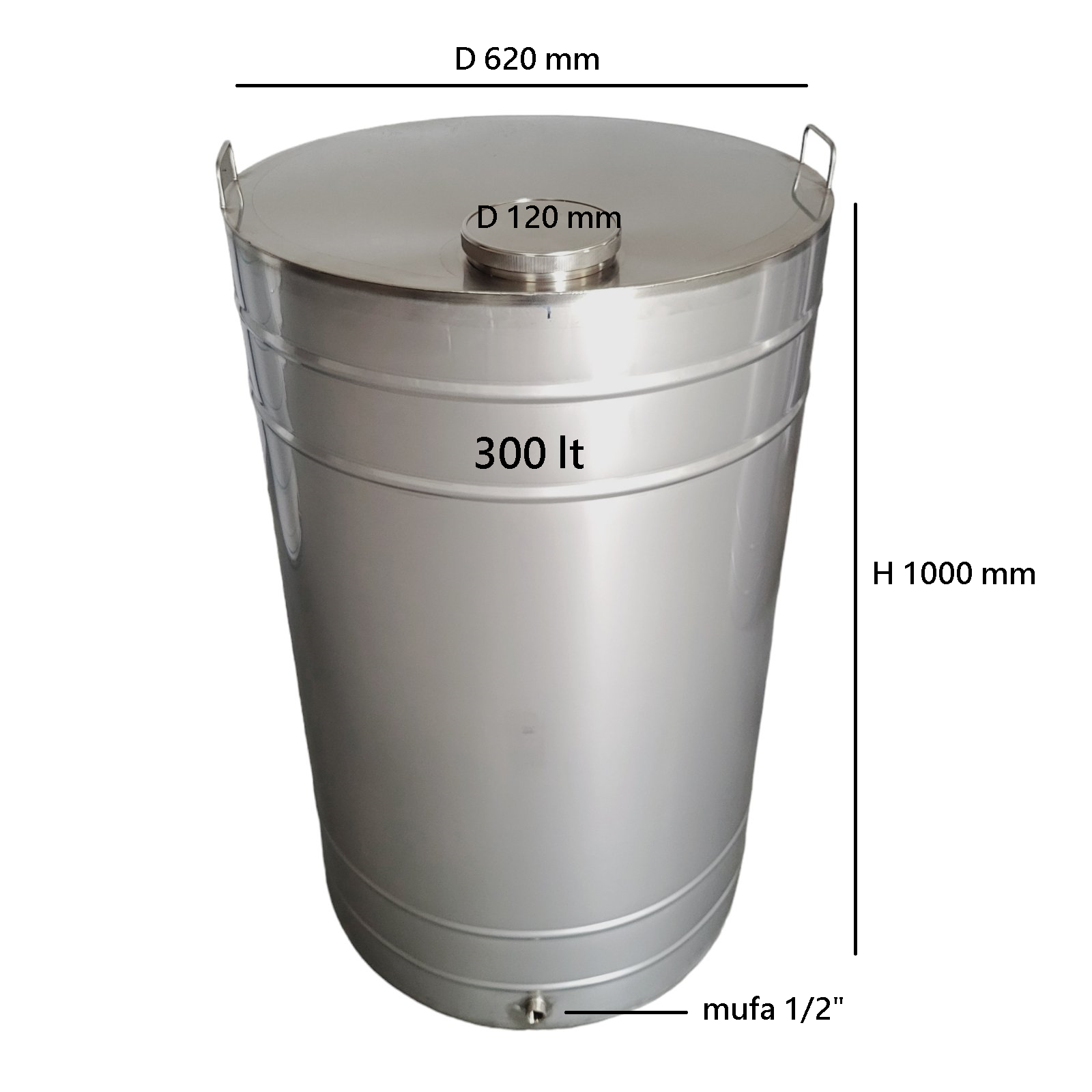 Acest butoi inox este echipat cu un capac DN 120 mm cu închidere etanșă, manere pentru o manipulare ușoară și un robinet din inox AISI 304. Capacul de tip clamp permite o închidere rapidă și sigură.